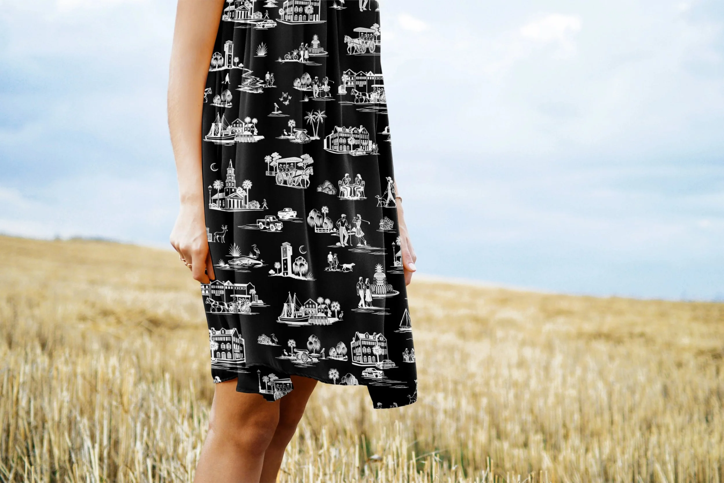 Like all Hughes Studio patterns, the Charleston toile is drawn in the Signature Linework Style — crisp black-and-white contour lines, minimal shading, and balanced white space that gives every illustration room to breathe. The scenes feature Charleston’s most beloved motifs: