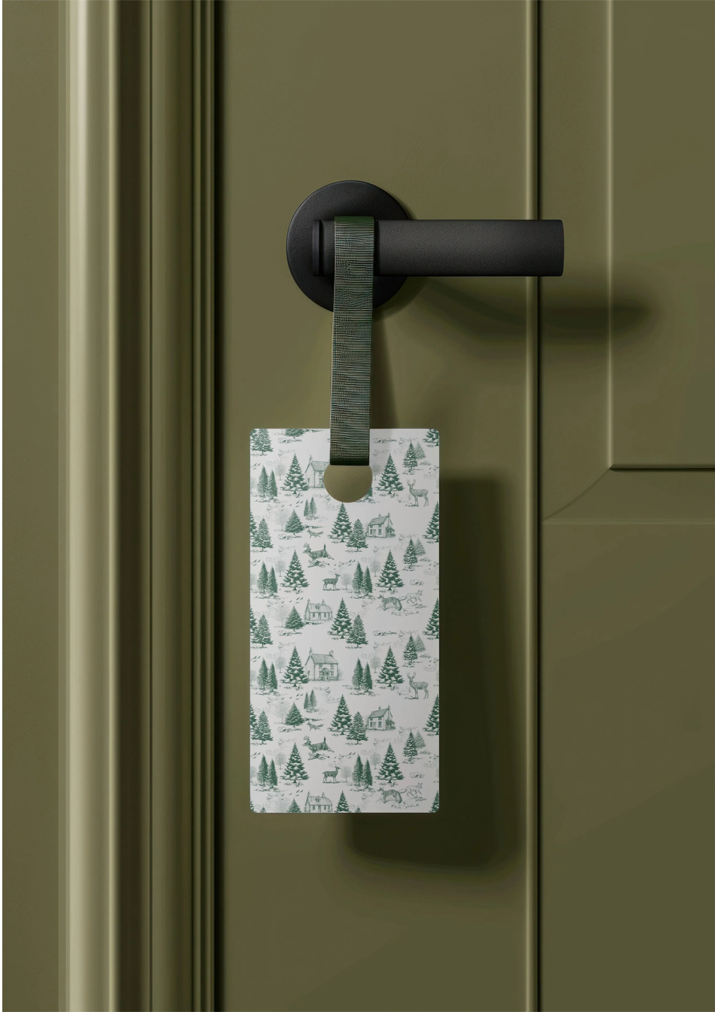 The team at Hughes Studio brought these custom scenes to life with intricate, detailed linework, carefully blending each element into a seamless toile de Jouy pattern. Natalie chose a forest green on a white background to reflect the natural beauty of the woodland setting, and the final pattern became the centerpiece of her bed-and-breakfast design.